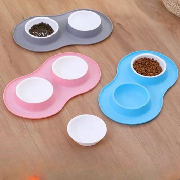 Anti-Splash Double Food Bowls for Large Dogs with Silicone Mat